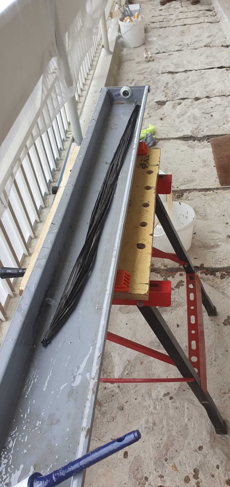 Aangezien de gehele dekvloer vervangen moest worden, werd ervoor gekozen om de galerijen te versterken met koolstofvezelkoord. Doordat het koolstofvezelkoord oftewel koolstofwrap aangebracht wordt in de gevel en doorloopt in de galerijplaten, is dit een ideale manier om een doorgestorte galerij te versterken. Aangezien het koolstofvezelkoord verlijmd wordt, valt deze manier van betonversterking onder de noemer koolstoflijmwapening.