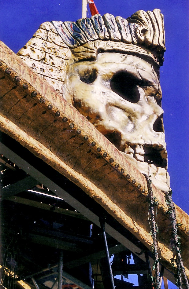 De tempel in het pretpark bestaat uit een staalconstructie, waarin de bordessen voor de voorstelling zijn opgenomen. Deze constructie dient tevens voor de bevestiging van de wapening en de gaasconstructie, waartegen het spuitbeton is aangebracht voor de wanden en de zuilen van de tempel. De onderdelen van de kop en de zijpanelen zijn in verband met gewichtsvermindering uitgevoerd in een gewapende polyesterconstructie, en zijn in hun geheel op de staalconstructie geplaatst. De gehele constructie van de tempel is door middel van een in verdunde vorm opgebracht acrylaat verfsysteem, van de natuurlijke kleuren voorzien.